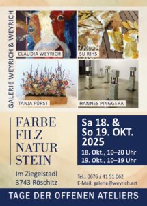Ein Fest der Elemente – Gemeinschaftsausstellung im Ziegelstadl, Röschitz Wir öffnen die Türen eines liebevoll umgestalteten Weinkellers zu den Tagen der offenen Ateliers. Ein Ort, an dem Kunst, Natur und Seele miteinander verschmelzen. Vier Künstler:innen, vier Handschriften verbunden durch Hingabe, …