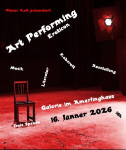 ART PERFORMING - Eroticon am 16.01.2026, 18h für eine freie Spende bieten wir musikalische Einlagen von Natalie Ritt, Naama Isabella Fassbinder und Flötist Harry Müller, erotisches Kabarett von Waltraud Wawerka, Fotoausstellung von Harry Surowitz, Lesung von Naama Fassbinder und Leseperformance …