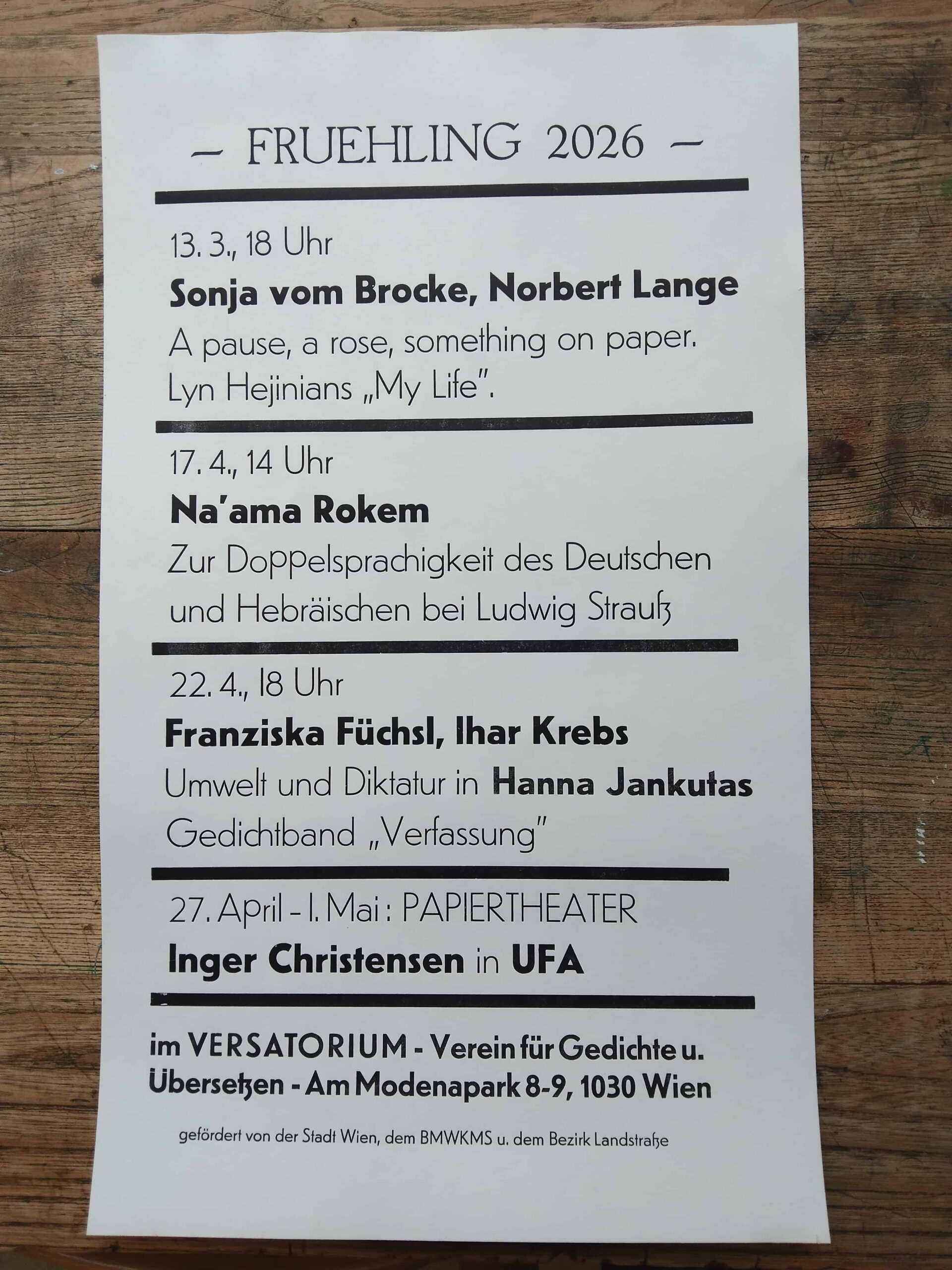 Sonja vom Brocke (*1980) schreibt Gedichte, Essays, Prosa und übersetzt Theorie und Dichtung; Studium der Philosophie, Anglistik und Germanistik in Köln, Hamburg und Paris; Dozentin am Institut für Sprachkunst (Wien); 2024 Weiskopf-Wedding-Preis der Berliner Akademie der Künste. Zuletzt erschien: „Blauer Ton. Gedichte“ (kook 2025).