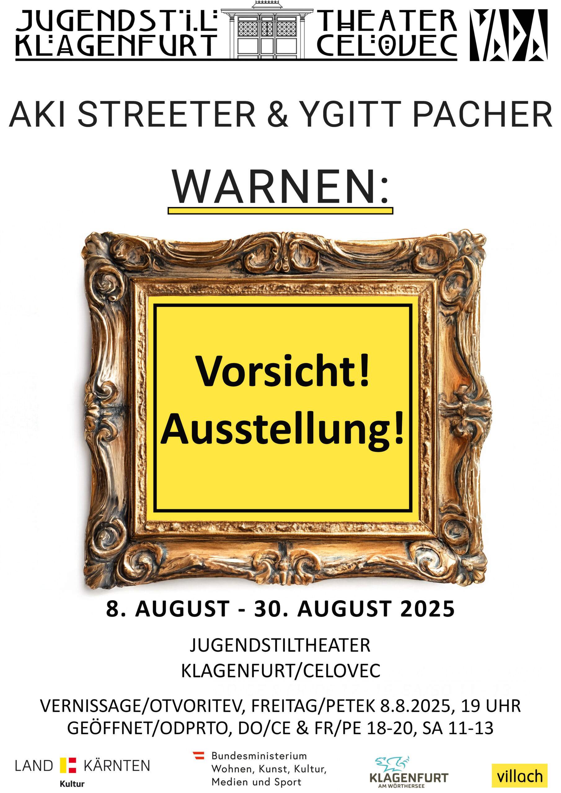 Auf Einladung von VADA (Verein zur Anregung des dramatischen Appetits) warnen Erich Ygitt Pacher und Aki Streeter zum zweiten Male vor ihrer Ausstellung im Klagenfurter Jugendstiltheater.