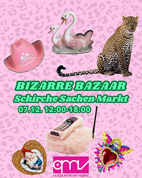 Das QUEER MUSEUM VIENNA lädt euch zum BIZARRE BAZAAR ein – einem eher ungewöhnlichen, queeren Markt. Der Markt soll keine kommerzielle Veranstaltung, sondern ein kuratorisches Statement zu unserer aktuellen Ausstellung „Ugly Things_Unlearning Beauty“ sein und die Autorität in Frage stellen, was in einem Museum seinen Platz findet und was nicht.