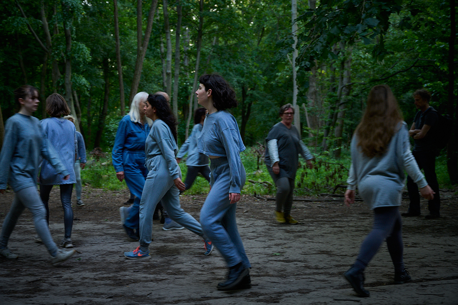 Die dem geopferten Schaf ins Ohr geflüsterte Frage hängt in der Luft: Wie lange kann Gaia uns noch tragen? Artemis, Göttin des Waldes, der Tiere, der Kinder und Frauen, ruft zum Sonnenuntergang zu einem zeitgenössischen Frühlingsritual, das in Verbundenheit mit den Materialitäten des Waldes Organe, Körper und Eingeweide in Bewegung setzt, gesellschaftliche Utopien der Koexistenz erkundet und Theater als Landschaft begründet.