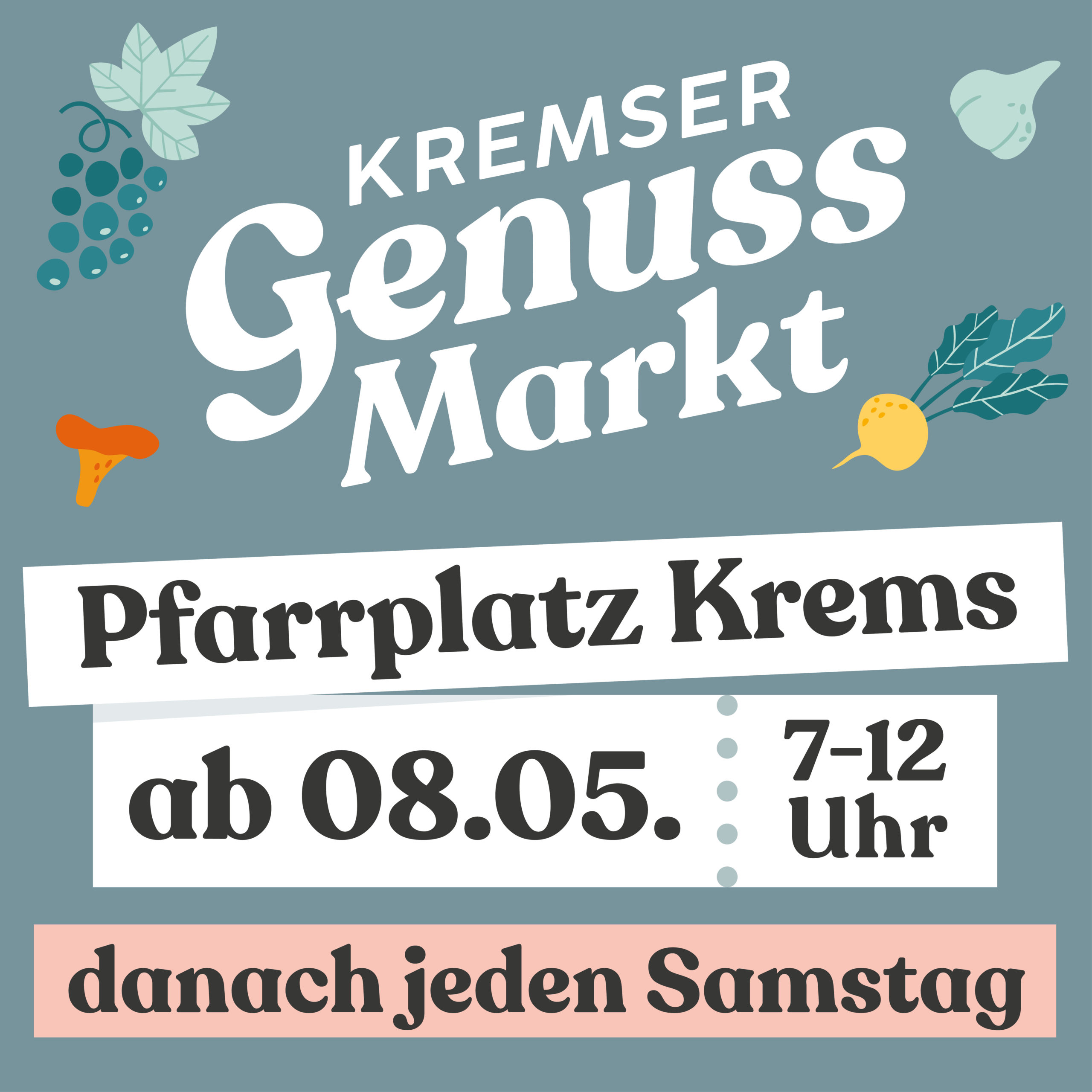 Ab Samstag, dem 8.Mai 2021 wird der Kremser Pfarrplatz zur kulinarischen Schatzkammer der Wachau und einer der schönsten, samstäglichen Genussmärkte Österreichs geht an den Start. Der Kremser Genussmarkt lädt zum Entdecken, Genießen und Verweilen ein.