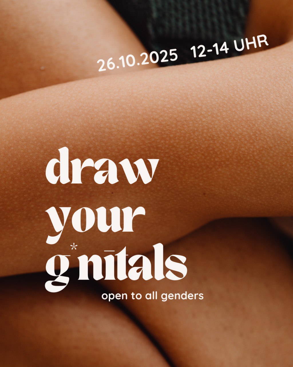 „Draw Your Genitals“ lädt dich ein, deine Genitalien als einen der vielen einzigartigen Teile deines Körpers zu erkunden. In einem vorurteilsfreien Raum kannst du mit verschiedenen Malmaterialien und -techniken experimentieren, dich mit dir selbst verbinden und deine*n innere*n Kritiker*in überwinden. Gemeinsam hinterfragen wir gesellschaftliche Schönheitsnormen und Tabus rund um Genitalien und entwickeln selbstbestimmte Perspektiven jenseits von patriarchalen Zuschreibungen.