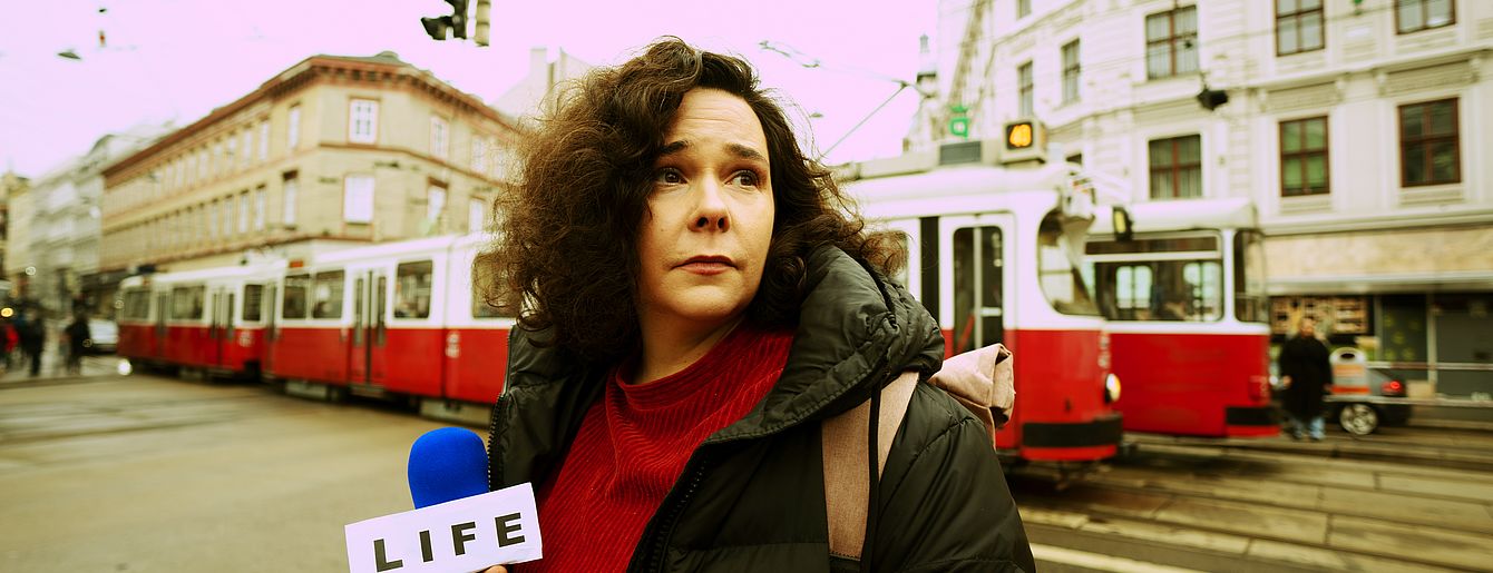 „Ich dekonstruiere das Format ‚Nachrichtensendung‘ weil ich glaube, dass es die Möglichkeit in sich birgt, inneren Ballast zu verarbeiten. Mir ist klar, dass ihr, das Publikum, in der unangenehmen Rolle von Psychotherapeut_innen stecken werdet, aber im Gegenzug bekommt ihr eine gehörige Dosis skurrilen Humor. Also schnallt euch gut an! Und macht euch bereit für ordentlich viel doppelbödigen Input.