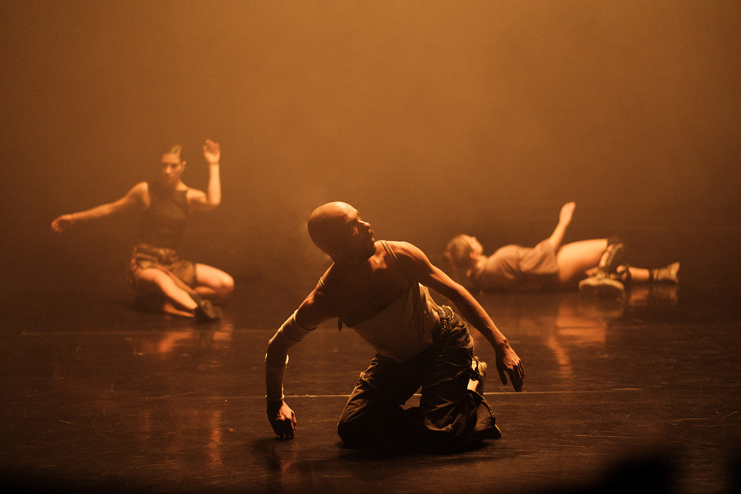 mama von gergő d. farkas ist eine Performance, die den Körper als sich wandelnde Landschaft erforscht. Wobei neue, fantastische Organe entstehen – unsichtbar, unfassbar und doch spürbar. Die drei Performer*innen lassen diese Organe durch Bewegung, Klang und Berührung lebendig werden. Sinnlichkeit wird zu einer Form des Erlebens, die über den menschlichen Körper hinausgeht.