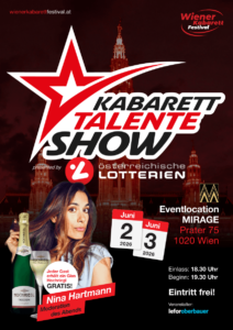 Es ist wieder soweit: Die Kabarett Talente Show, presented by Österreichische Lotterien, geht in die nächste Runde! Du denkst, du hast das Zeug, auf der Kabarettbühne zu überzeugen, dich vor einer renommierten Jury zu beweisen und dir einen Platz als Voract beim Wiener Kabarettfestival zu sichern? Dann nutze deine Chance, einen Platz bei der Kabarett Talente Show am 02. oder 03. Juni 2026 im Mirage Wien zu ergattern. Du möchtest im Publikum dabei sein? Dann sichere dir jetzt Tickets auf der Homepage des Mirage …