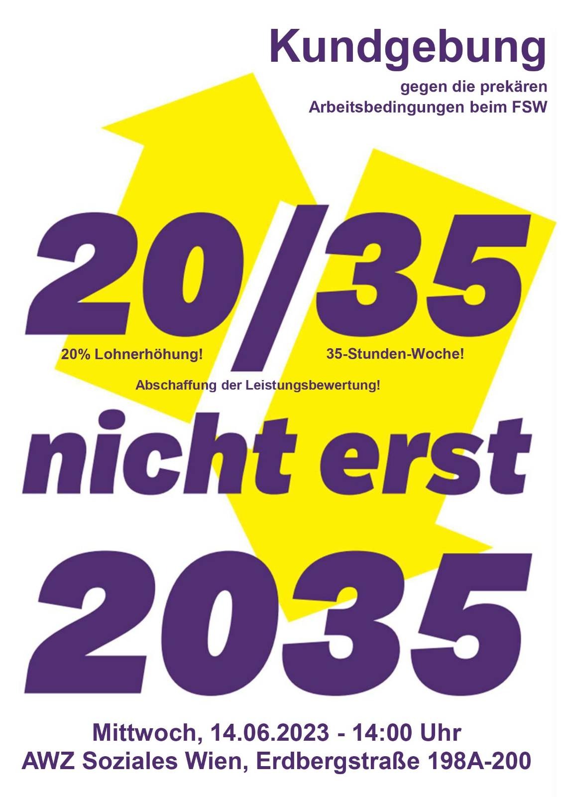 Am 14.06. finden die Kollektivvertragsverhandlungen des Fonds Soziales Wien (FSW) bezüglich Lohnerhöhung statt und wir als Basisgruppe von Obdach Wien nehmen diesen Tag zum Anlass um gegen die ausbeuterischen, neoliberalen Arbeitsbedingungen des FSW und dessen Sozialpolitik zu protestieren.