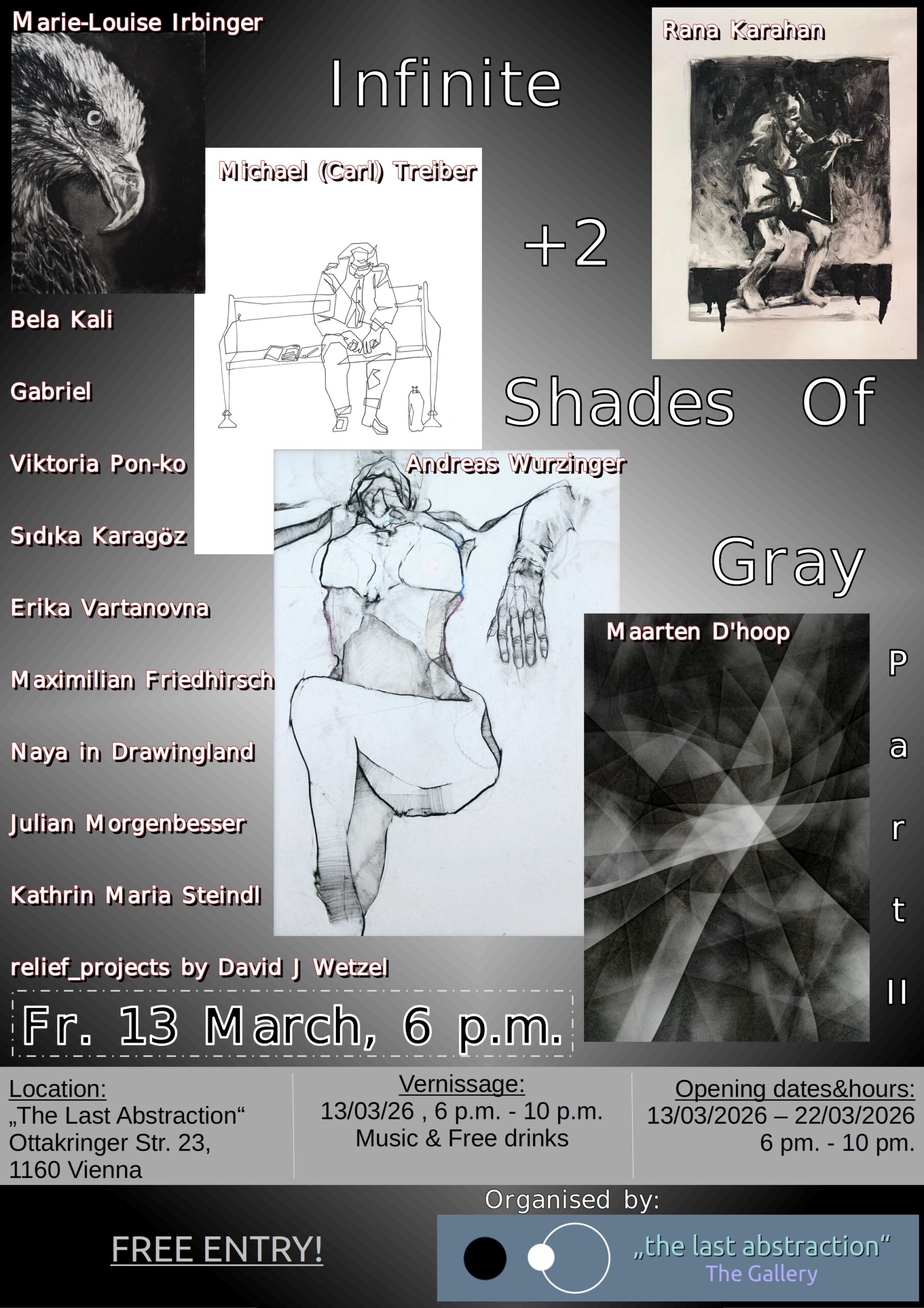 Die Ausstellung findet in The Last Abstraction , einer neuen, einzigartigen Wiener Galerie statt – einem Ort für freien Ausdruck, konstruktiven Austausch und die Verwirklichung von Ideen.