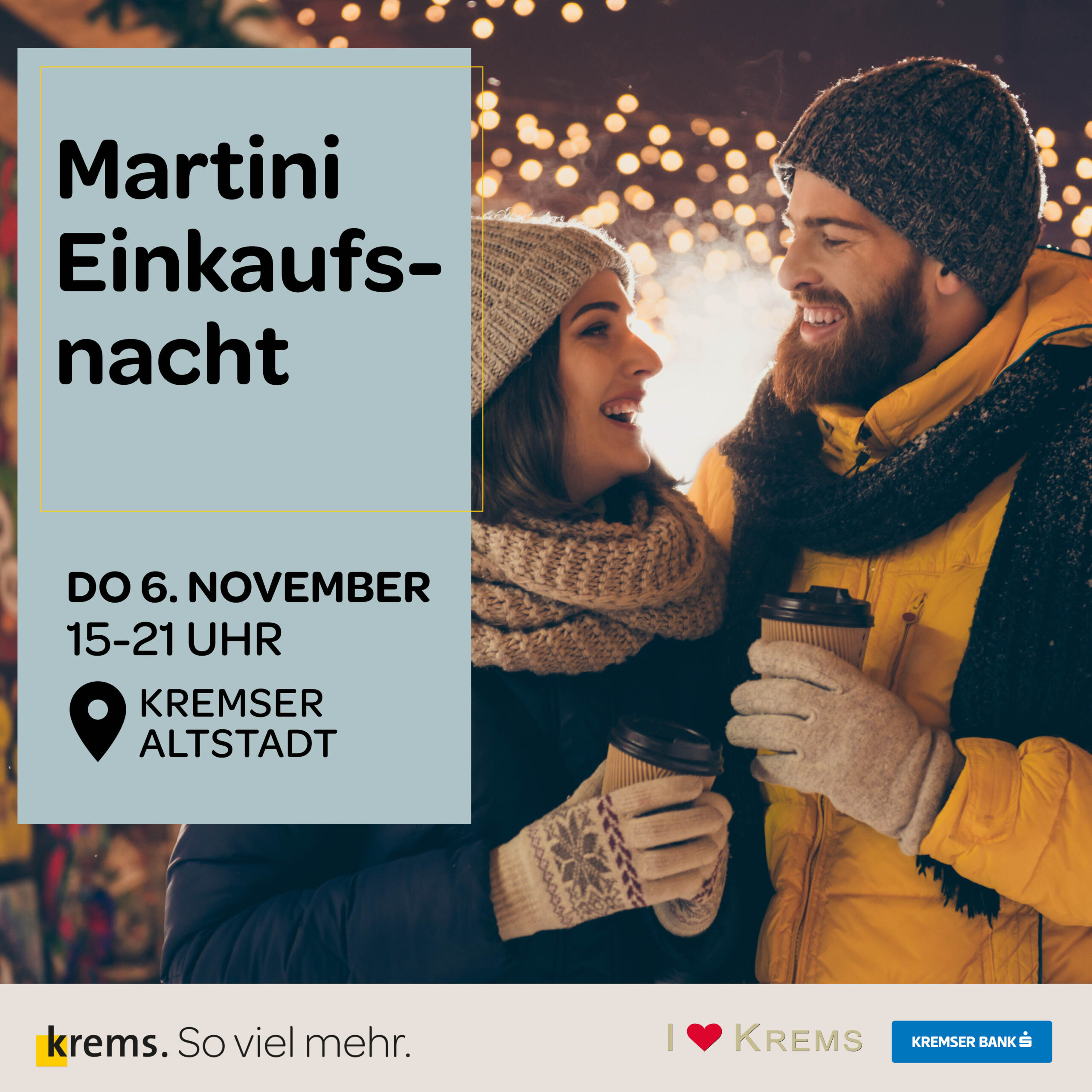 Am Donnerstag, den 06.11., findet von 15-21 Uhr wieder unsere Martini Einkaufsnacht in der Kremser Innenstadt statt.