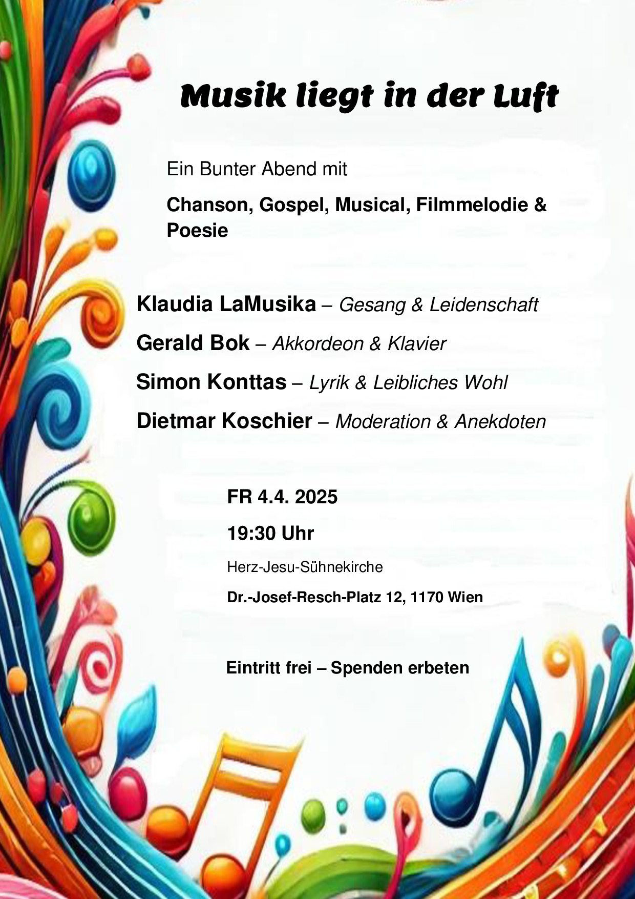 Ein Bunter Abend aus Chanson, Gospel, Musical, Filmmelodie und Poesie
