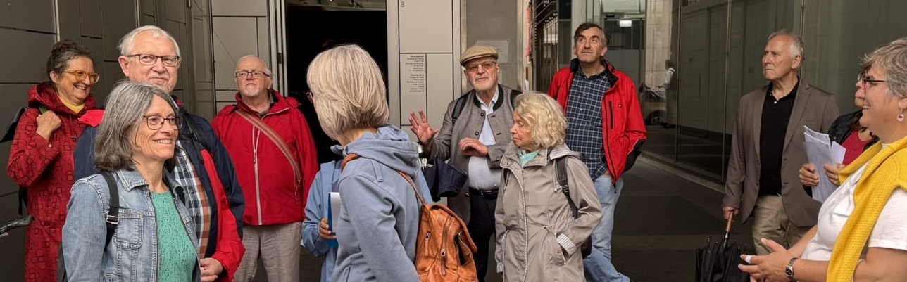 Inspiriert vom FairWandeln-Behelf „öko-fair-sozialer Spaziergang“ leitet KA-Generalsekretär Christoph Watz den Spaziergang durch die Wiener Neustädter Innenstadt.