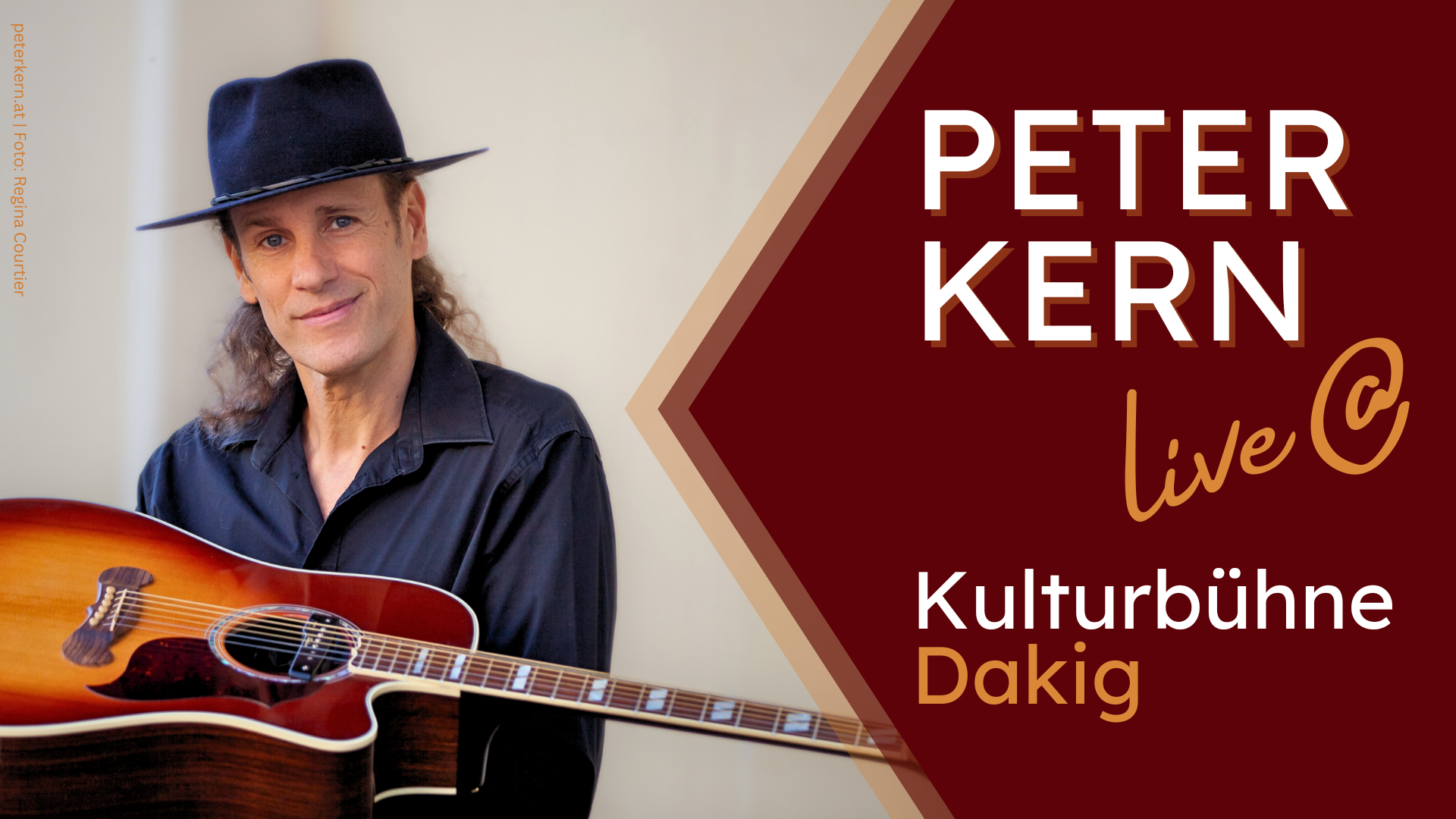 Ein Konzert mit Peter Kern ist ein Garant für Spontanität, Spielfreude und Live-Musik auf höchstem Niveau. Mit seinem neuen Album Guitar Man zeigt er, wie lebendig und mitreißend dieser Musikstil auch heute noch ist. Er erzählt im Alleingang Geschichten, die tief durch den Blues in ein lebensbejahendes Gefühl führen. Sein breit gefächertes Repertoire von eigens interpretierten Klassikern und zahlreichen Eigenkompositionen reicht bis hin zu Rock’n’Roll, Country und Gospel. Mit unverkennbarer Stimme, charismatischer Bühnenpräsenz und einer Leidenschaft, die das Publikum mitreißt, begeistert er nicht nur eingefleischte Blues-Fans, sondern alle, die handgemachte Live-Musik schätzen.