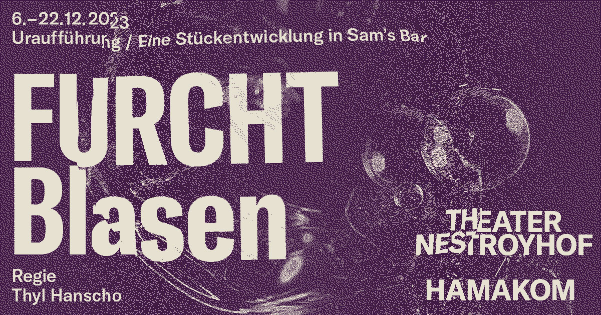 Regisseur Thyl Hanscho und Ensemble laden zu einer aufregenden, humorvollen Expedition in Sam´s Bar, herauszufinden, welche Widerstände wir durchdringen müssen, um einander zu berühren. FURCHTBlasen erforscht identitätsstiftende Erzählungen politischer und sozialer Blasen und fragt, wie wir uns Mechanismen der Abschottung widersetzen können.
