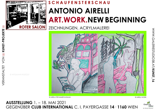 Schaufensterschau im 16. Antonio Airelli: ART.WORK.NEW BEGINNING – Zeichnungen, Acrylmalerei