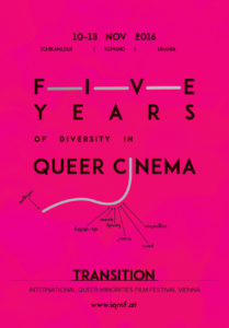 5 YEARS OF DIVERSITY IN QUEER CINEMA: TRANSITION Film Festival von 10. bis 18. November 2016 in Wien Fünf Jahre „jung“, ist das TRANSITION INTERNATIONAL QUEER MINORITIES FILM FESTIVAL VIENNA, und erstmals wird es das Publikum über neun Tage in seinen Bann ziehen. Von 10. bis 18. November 2016 verwandeln sich die Wiener Kult-Kinos Schikaneder, Top Kino und Urania Kino in einen Raum für vielfältige, queere Filmkunst. Das Festival ist die einzige europäische Filmveranstaltung, die sich mit queeren Minderheiten auseinandersetzt. …
