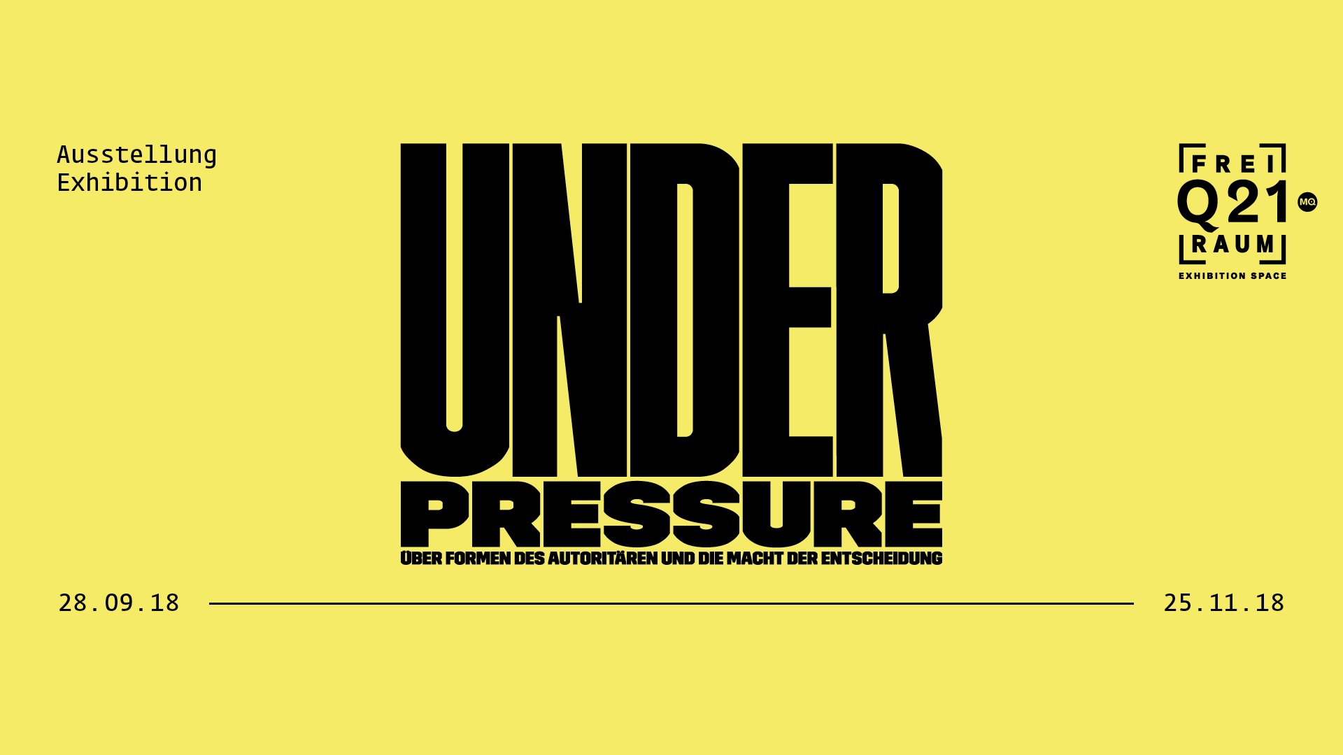 Frage, ob neue Formen des Autoritären sich dadurch unterscheiden, dass sie individuelle Freiheiten erlauben oder zumindest diesen Eindruck vermitteln. Die Ausstellung „Under Pressure – Über Formen des Autoritären und die Macht der Entscheidung“ im frei_raum Q21 exhibition space, kuratiert von Sabine Winkler, untersucht, welche Mechanismen, Strategien und Taktiken bei der Einschränkung von Entscheidungsfreiheiten zum Einsatz kommen. Eröffnung ist im Rahmen der „viennacontemporary“ am Donnerstag, 27.09., 19 Uhr.