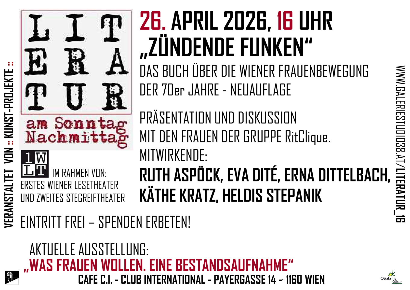 Feministinnen im Wien der 70er Jahre – Neuauflage. Präsentation und Diskussion mit den Frauen der Gruppe RitClique, Mitwirkende: Ruth Aspöck, Eva Dité, Erna Dittelbach, Käthe Kratz, Heldis Stepanik
