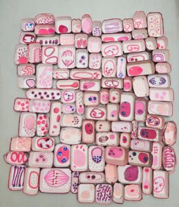 Vernissage am Samstag, 27. September 2025, 18:00 Uhr Im Rahmen des Kunstfestivals Grundstein – MUSAO – Museum auf Abwegen Ottakring Ausstellung: 27.09.2025 bis 10.12.25.2025, Mo-So von 7:00 – 23:00 Uhr Die Installation besteht aus im Supermarkt gesammelten Kartonschalen, die zu einer zellartigen Struktur verwoben sind. Wie endlose Zellteilungen spiegeln sie den Kreislauf von Konsum und Abfall wider. Im Inneren erscheinen gemalte, verfremdete Pflanzenzellen – zwischen Vertrautem und Fremdem, organisch und außerirdisch. Sie verweisen auf eine fragmentierte Beziehung zu Nahrung, Körper …