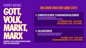 Die IG Theoprax von LINKS Wien tastet sich an die politische Theorie des Postfundamentalismus heran. Wir haben die Hoffnung, mit Hilfe des postfundamentalistischen Ansatzes häufig auftretende Bruchstellen innerhalb der Linken besser bearbeiten zu können. Inspiriert durch die Veranstaltung „Gott, Volk, Markt, Marx: Auswege aus Fundamentalismus und Polarisierung“ wollen wir uns in den nächsten Monaten einigen Motivationen für feste (Glaubens-)Überzeugungen widmen, die zu theoretischem wie praktischem Fundamentalismus neigen und damit gerade auch die Linke spalten. Entlang versierter Inputs möchten wir erkunden, …