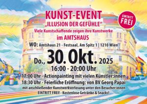 KUNST-EVENT im Amtshaus, Robin der Künstler ladet ein, Viele Kunstschaffende sind vor Ort und zeigen ihre Kunst Live Actionspainting, Eröffnung mit BV Georg Papai Kunstwekverlosung Getränke & Snacks - KOSTENLOS! EINTRITT FREI! Komm vorbei und sei dabei!